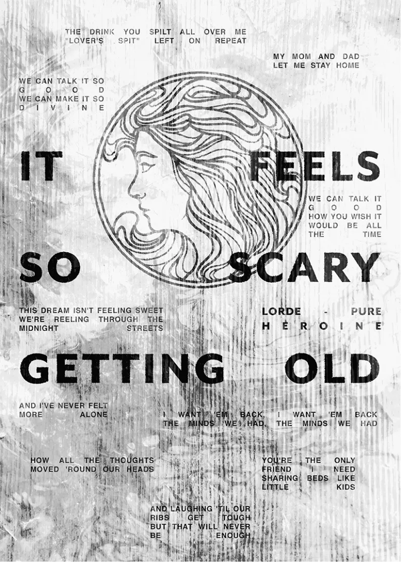 Pendant l'été, j'ai créé un ensemble d'affiches pour explorer de nouveaux styles et techniques graphiques sur Photoshop. Chaque affiche a été inspirée par un mélange de chansons pop et indie, ainsi que par des thèmes de films et des citations que j'ai trouvées en ligne.