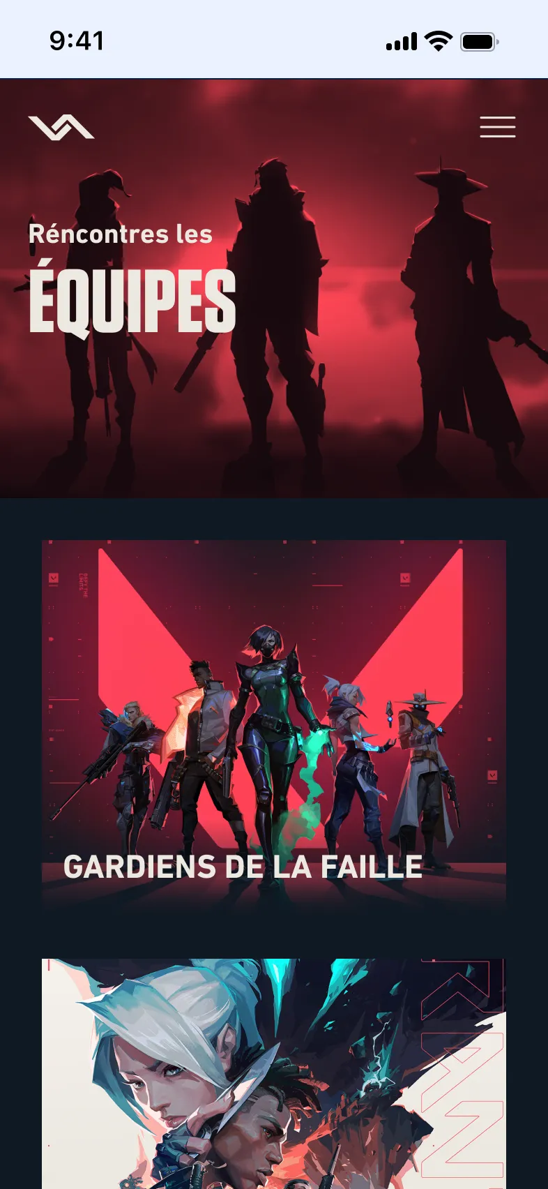 J’ai également créé un prototype pour les versions mobile et desktop, en mettant particulièrement l’accent sur un menu personnalisé qui reflète la disposition du menu du jeu, ajoutant ainsi une touche authentique pour les fans de Valorant.